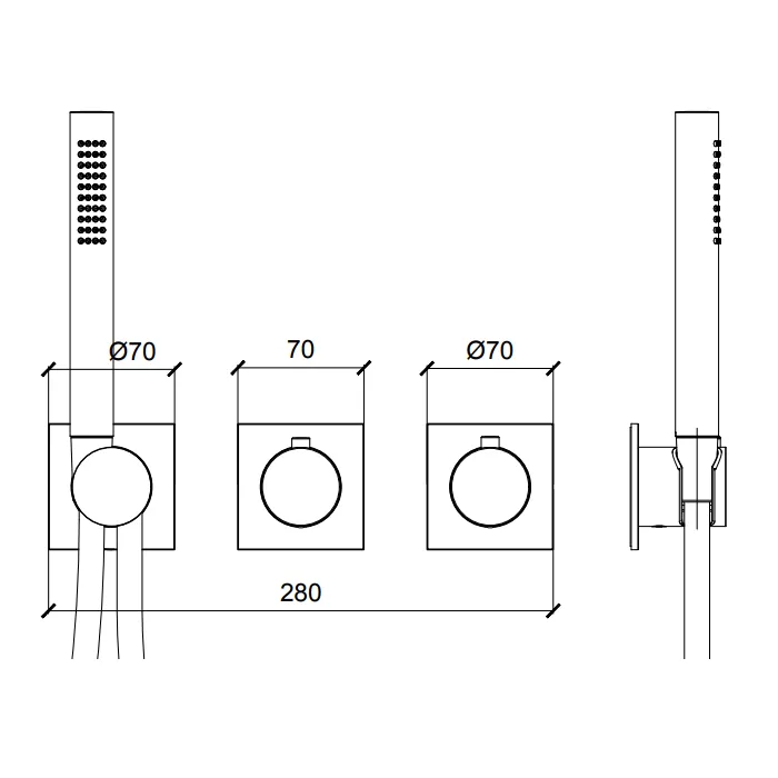 Внешняя часть термостатического смесителя с переключателем Almar на 2-3 положения, ручная лейка, absolute black ab316 E180183.AB316