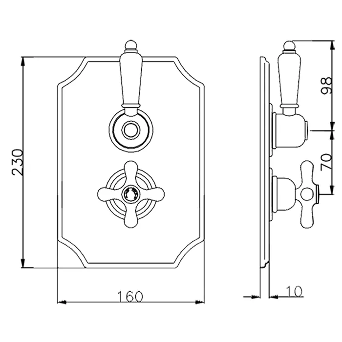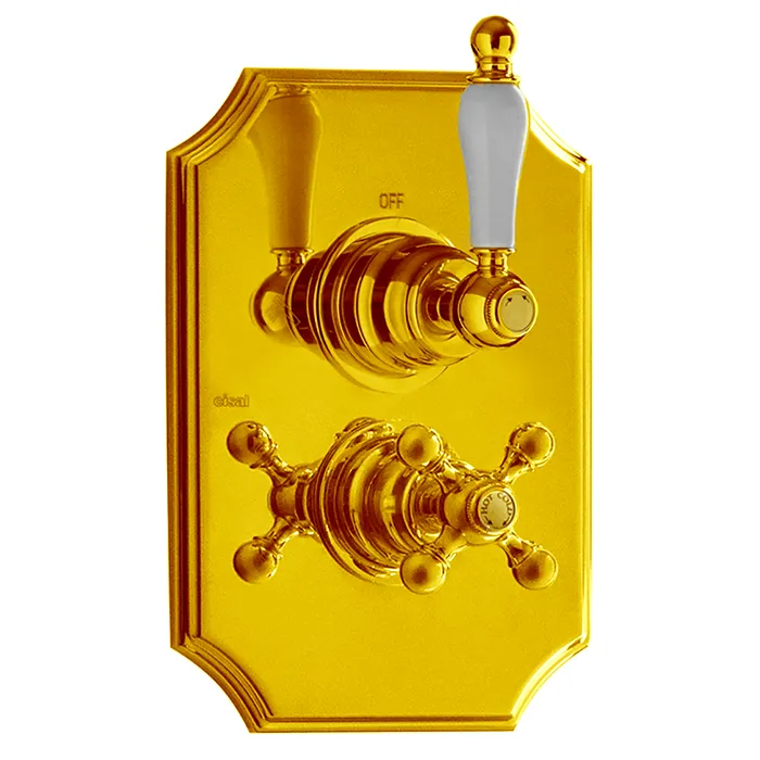 Внешняя часть термостатического смесителя с переключателем Cisal Arcana Toscana на 2 выхода, золото/белый TS01810024