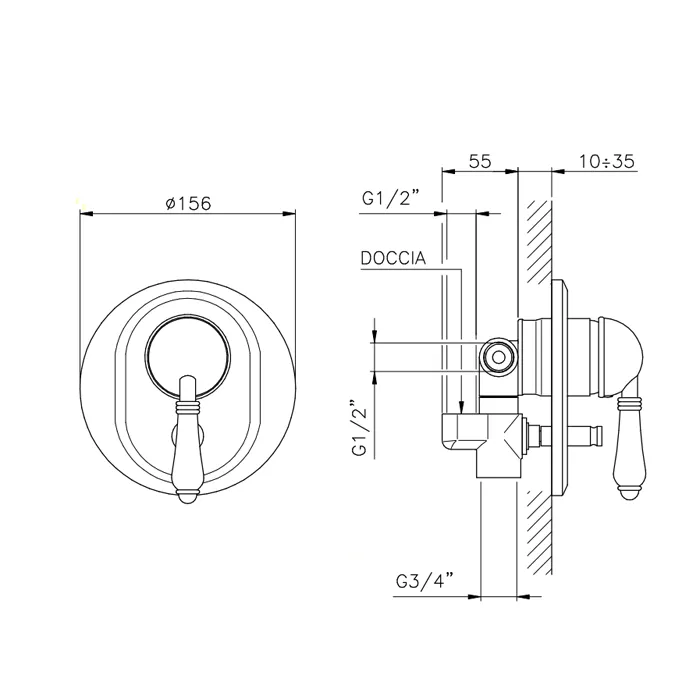 Nicolazzi 3460CR76 внешняя часть смеситель для душа с переключателем *P.M. BLANC*