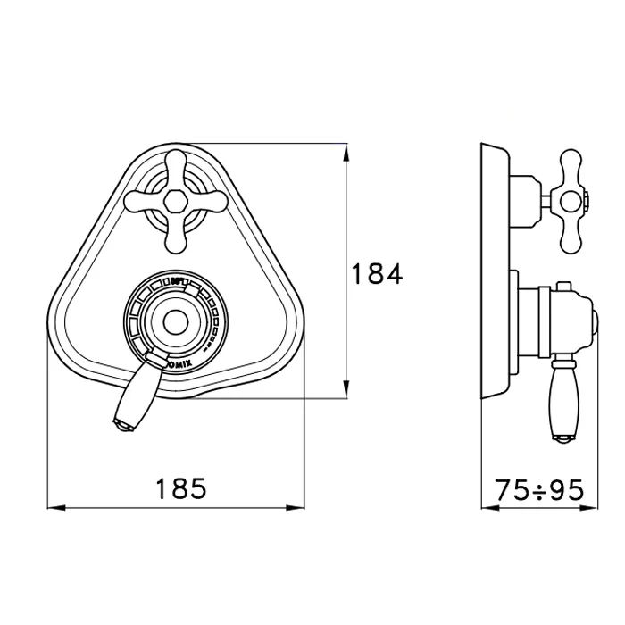 Внешняя часть встраиваемого термостатического смесителя для душа Stella Roma IS3294 P.V. с переключателем на 2 выхода, хром RM 06012 CR00