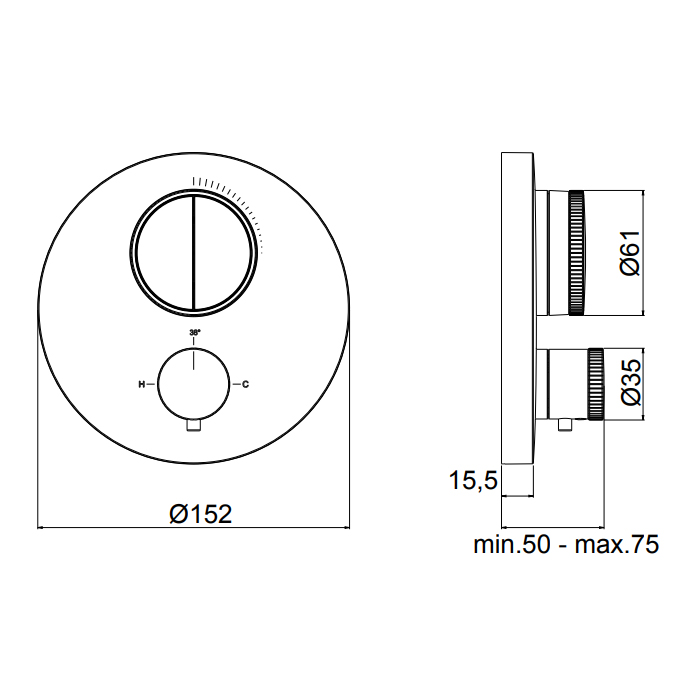 Внешняя часть встраиваемого термостатического смесителя с кнопочным управлением Almar для 2-х потребителей, черный металл брашированный pvd E176632.AB