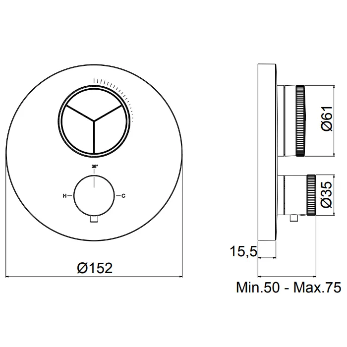 Внешняя часть встраиваемого термостатического смесителя с кнопочным управлением Almar для 3-х потребителей, черный металл брашированный pvd E176633.AB