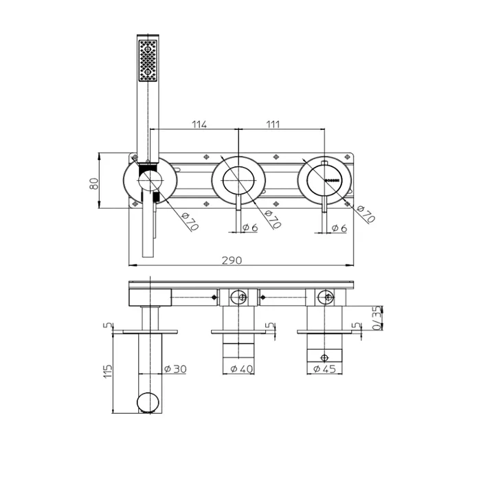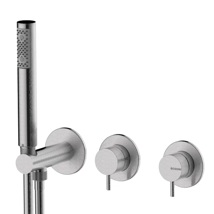 Встраиваемый смеситель для душа Bossini Nobu с перекл.на 2 вых. душ. набор Zen-Inox с гибким шлангом Cromolux 150 см.Mat brushed S.S.