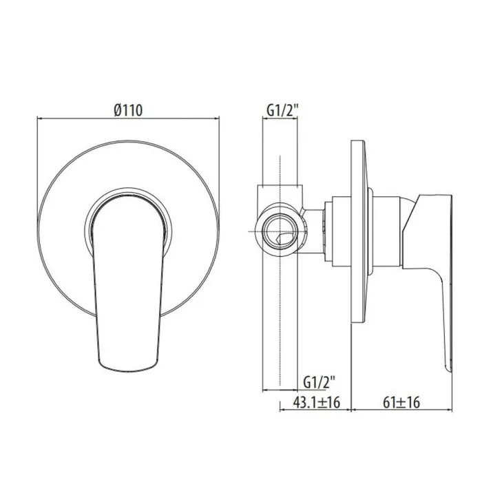 Встраиваемый смеситель для душа Gattoni H2omix3000 укомплектован внутренней частью, хром 3030/30C0cr