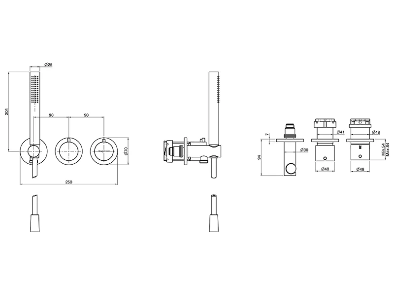Встроенный термостатический смеситель для душа Fima Carlo Frattini FIMATHERM F3149WX9NS на 2 источника с душевым комплектом, цвет черный матовый: