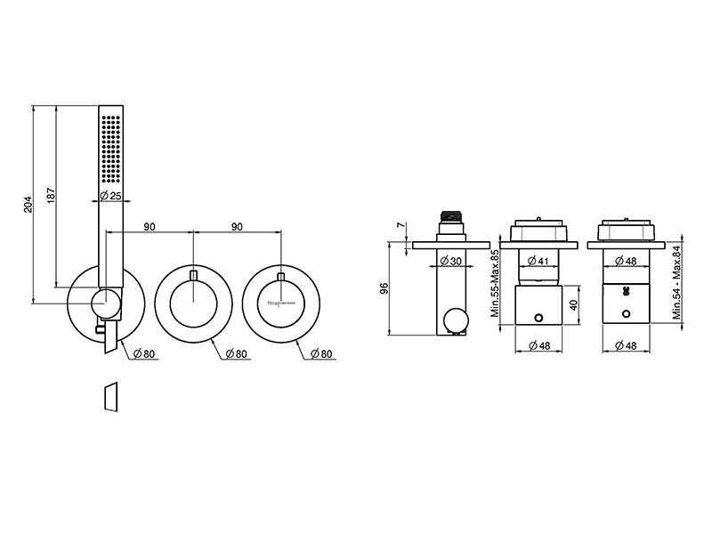 Встроенный термостатический смеситель для душа Fima Carlo Frattini FIMATHERM F3149X9NS на 2 источника с душевым комплектом, цвет черный матовый: