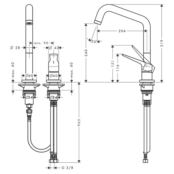 Axor Citterio M Смеситель для кухни, однорычажный, на 2 отв, излив: 204мм, цвет: хром 34820000
