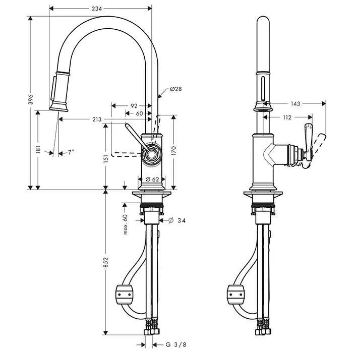 Смеситель для кухни однорычажный с выдвижным душем, 14.3*23.4*h39.6,, шлифованная бронза