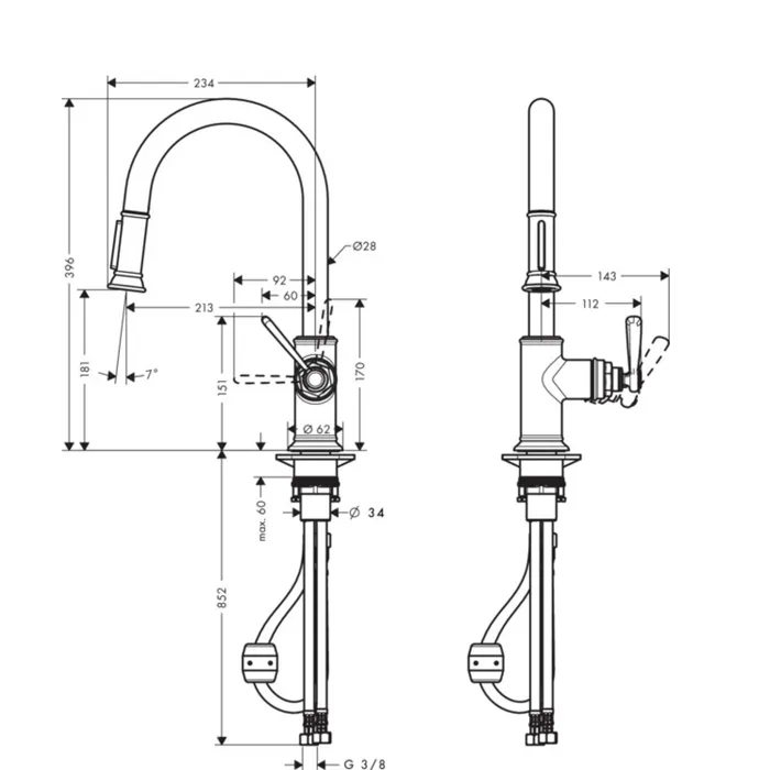Axor Montreux Смеситель для кухни, однорычажный, на 1 отв., с выдвижной лейкой, цвет: хром 16581000