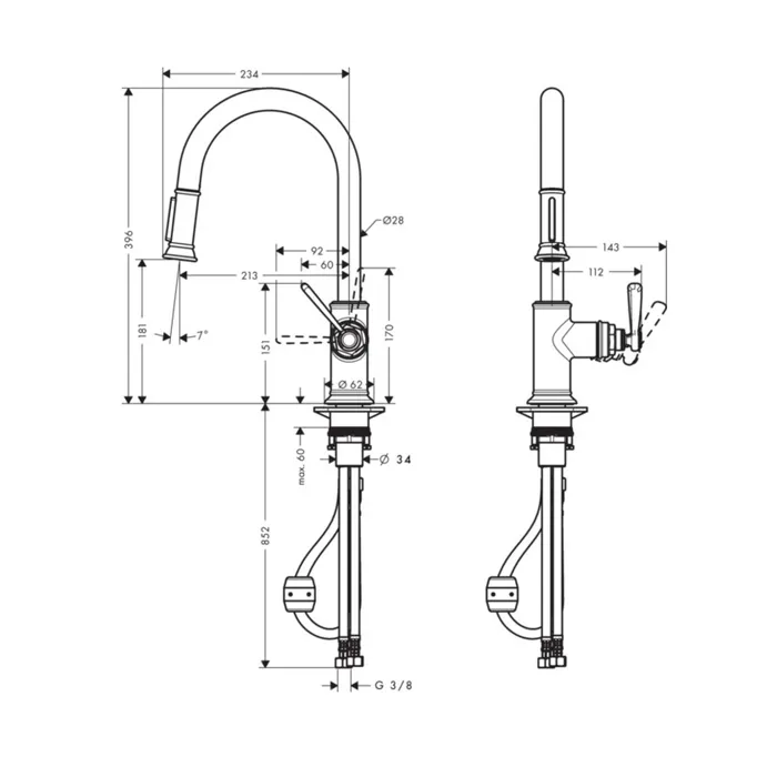 Axor Montreux Смеситель для кухни, однорычажный, на 1 отв., с выдвижной лейкой, цвет: сталь 16581800