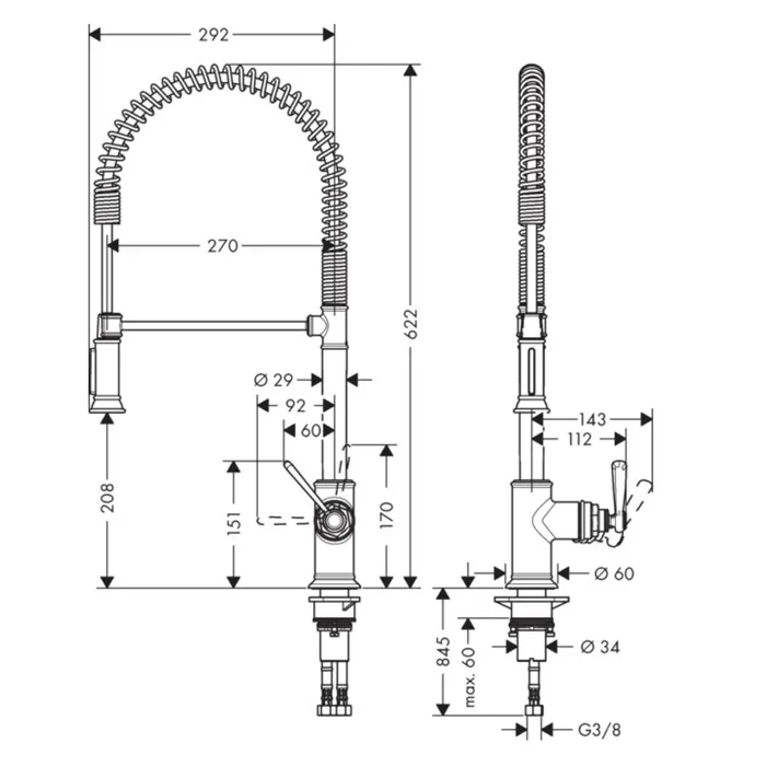 Axor Montreux Смеситель для кухни, однорычажный, на 1 отв., с выдвижной лейкой, цвет: сталь 16582800
