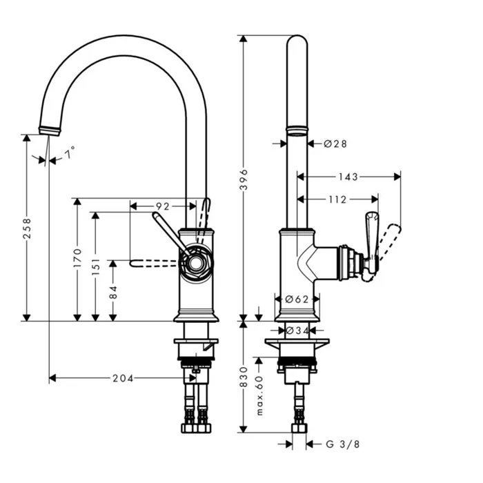 Axor Montreux Смеситель для кухни, однорычажный, на 1 отв., цвет: хром 16580000