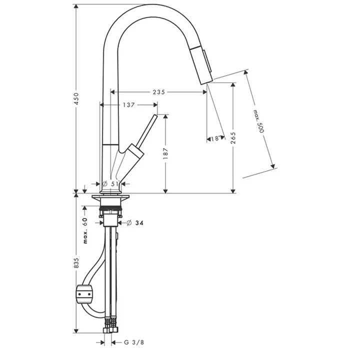 Axor Starck Смеситель для кухни, однорычажный, на 1 отв, с выдвижным душем, излив 235мм, цвет: под с