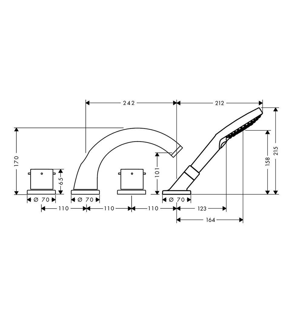 Axor Starck, Смеситель для ванны, на 4Axor Starck, отверстия, монтаж на плитку, внешняя часть, цвет: хром 10451000