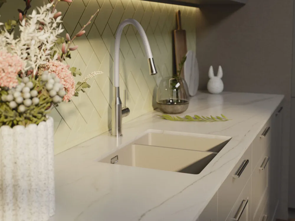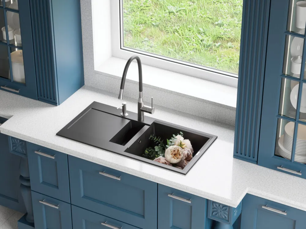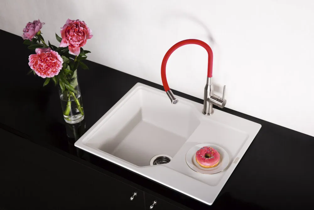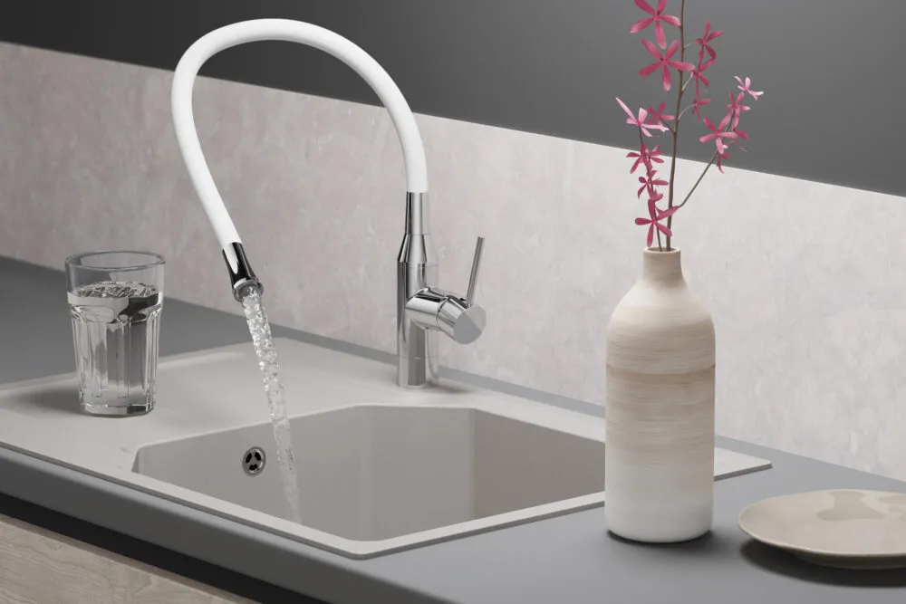 Вытяжной шланг обеспечивает удобство использования смесителя, которое заключается в возможности мытья труднодоступных мест и бережной очистке мелких столовых приборов. С его помощью также можно тщательно промывать овощи, фрукты и посуду после мытья без лишних брызг на столешницу вокруг мойки.