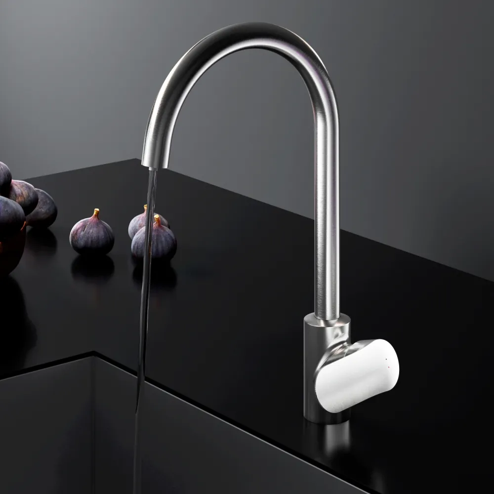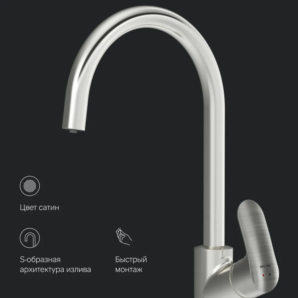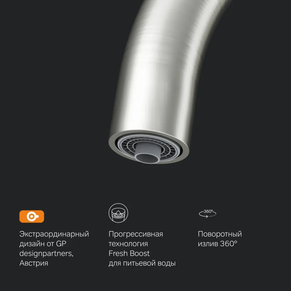 Кухонный смеситель АМ.РМ со встроенным каналом для питьевой воды успешно совмещает в себе два в одном. Благодаря прогрессивной технологии Fresh Boost при вращении ручки на 90 градусов вы можете наслаждаться чистой водой из фильтра. Если же Вам нужна обычная вода смеситель управляется привычным способом. Также конструкция совмещающая в себе 2 в 1 экономит место и придаёт кухне опрятный вид без лишних элементов.