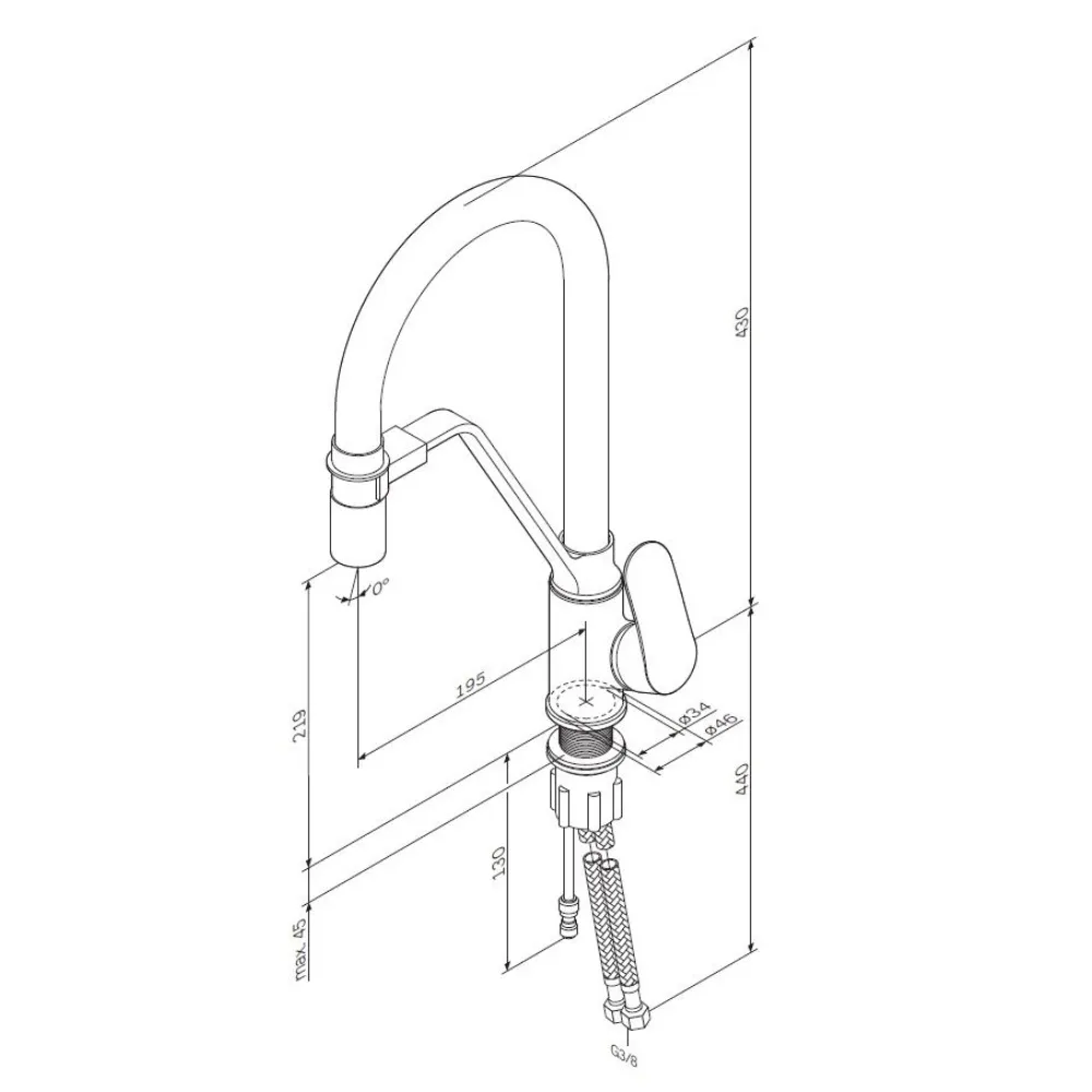- Высота излива, мм: 219