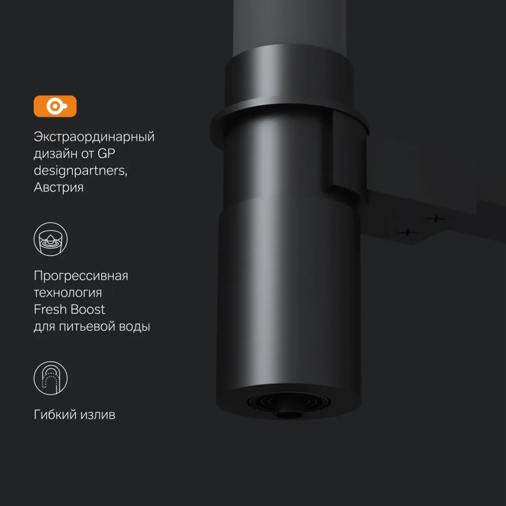 Безусловный лидер среди кухонных смесителей бренда – стильный и функциональный смеситель с профессиональным изливом и встроенным каналом для питьевой воды из культовой коллекции Like.