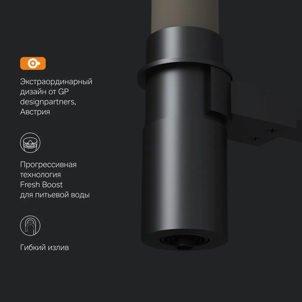 Безусловный лидер среди кухонных смесителей бренда – стильный и функциональный смеситель с профессиональным изливом и встроенным каналом для питьевой воды из культовой коллекции Like.