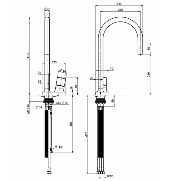 Смеситель для кухни Fima Carlo Frattini Kitchen Fluid, с выдвижной лейкой, вращающийся излив, хром F7028CR