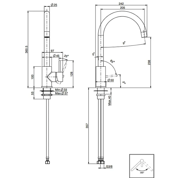 Смеситель для кухни Fima Carlo Frattini Kitchen на 1 отверстие, нержавеющая сталь F7057/BINOX