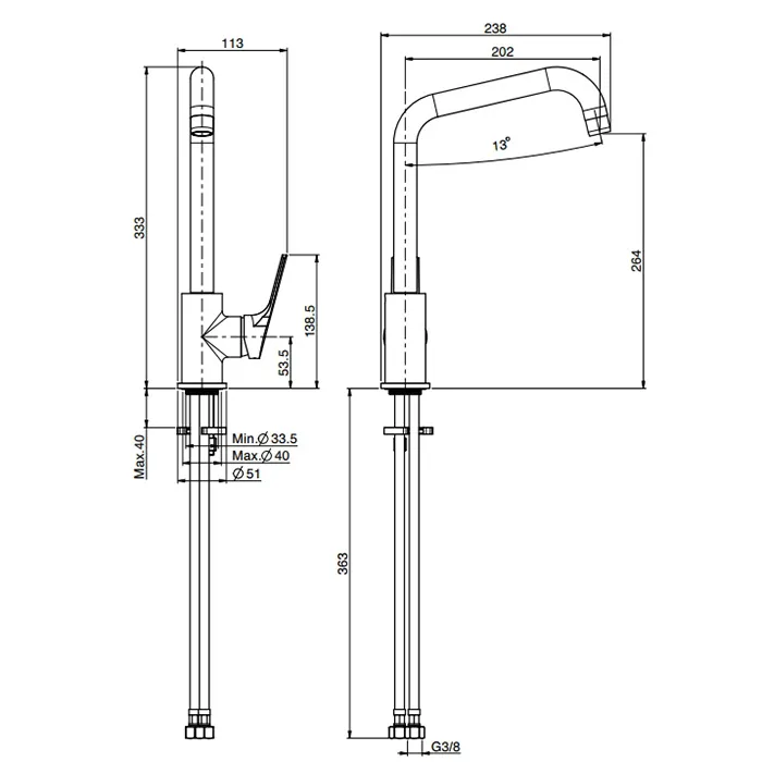 Смеситель для кухни Fima Carlo Frattini Kitchen на 1 отверстие, Serie 4, хром F3767/1RCR.ES