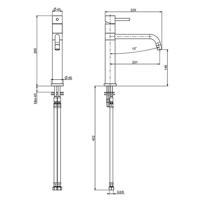Смеситель для кухни Fima Carlo Frattini Kitchen на 1 отверстие, Spillo Up, чёрный матовый F3227NS