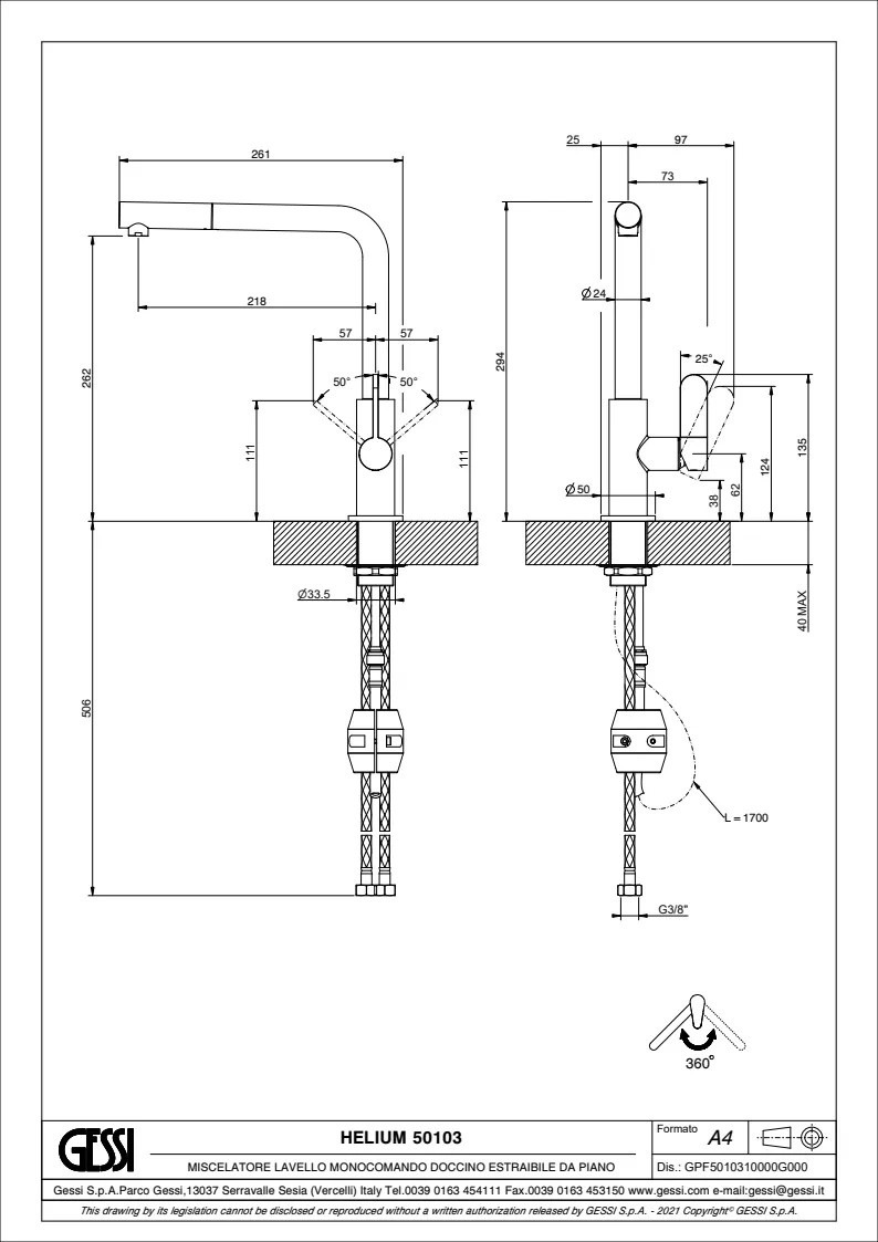 Смеситель для кухни Gessi Helium 50103.299 Matte Black