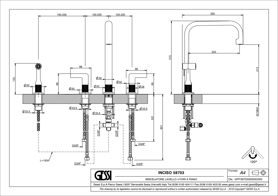 Смеситель для кухни Gessi Inciso 58703.149 в цвете матовый никель Finox.