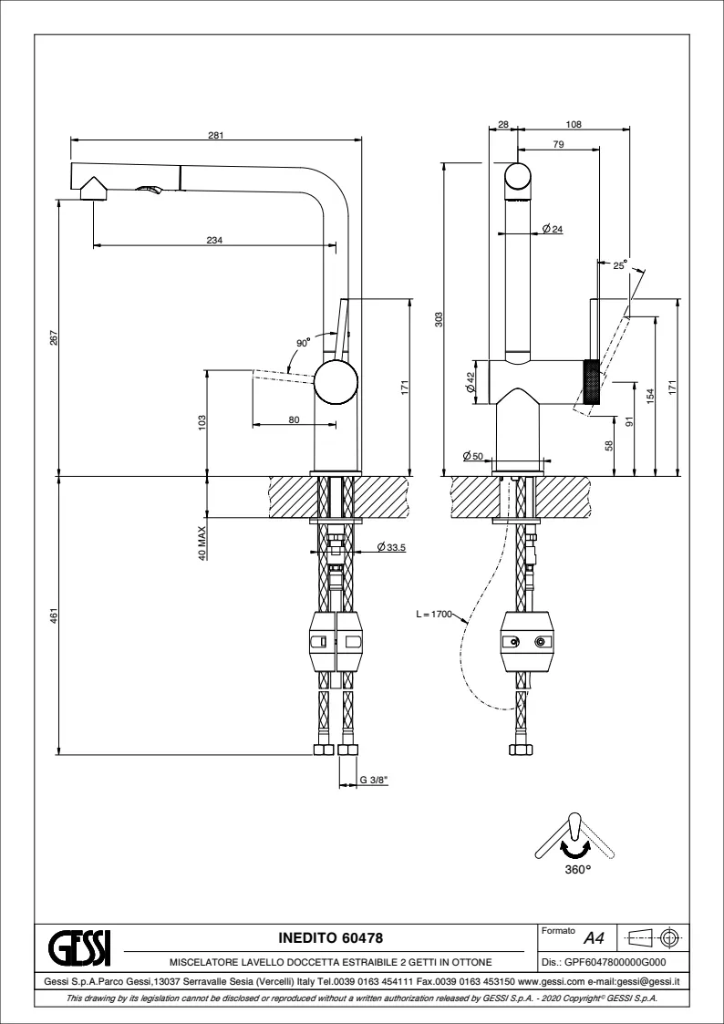 Смеситель для кухни Gessi Inedito 60478.031 Chrome
