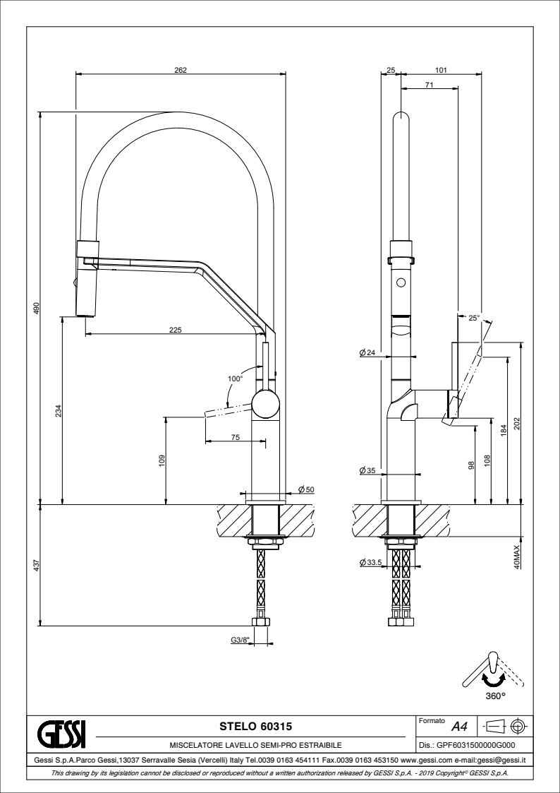 Угол поворота носика: 360°.