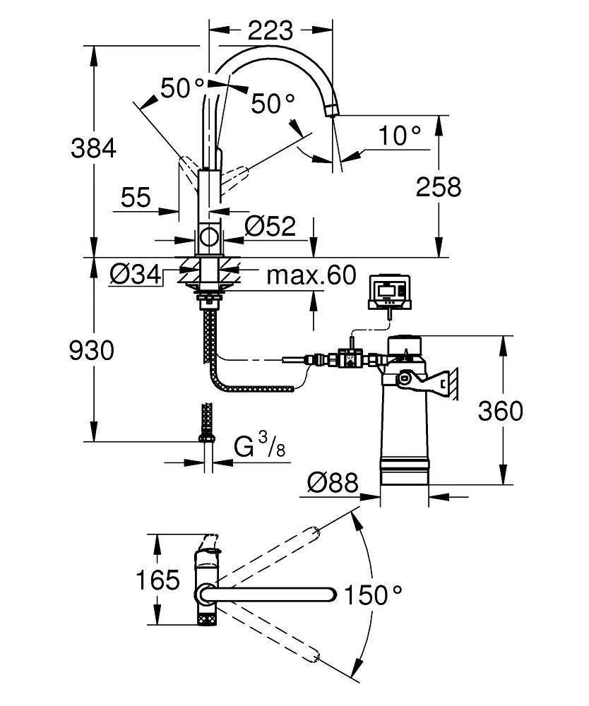 Смеситель для кухни GROHE Blue Pure Eurosmart, стартовый комплект, хром, 30386000