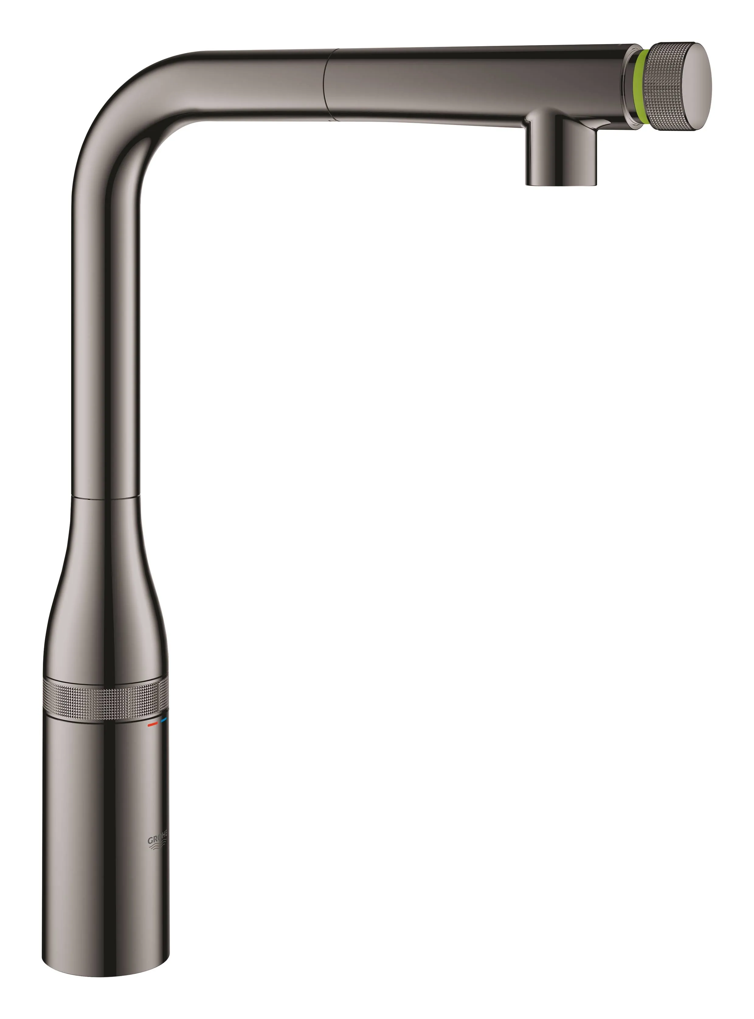 Смеситель для кухни GROHE Essence SmartControl с выдвижным L-образным изливом, темный графит, глянец