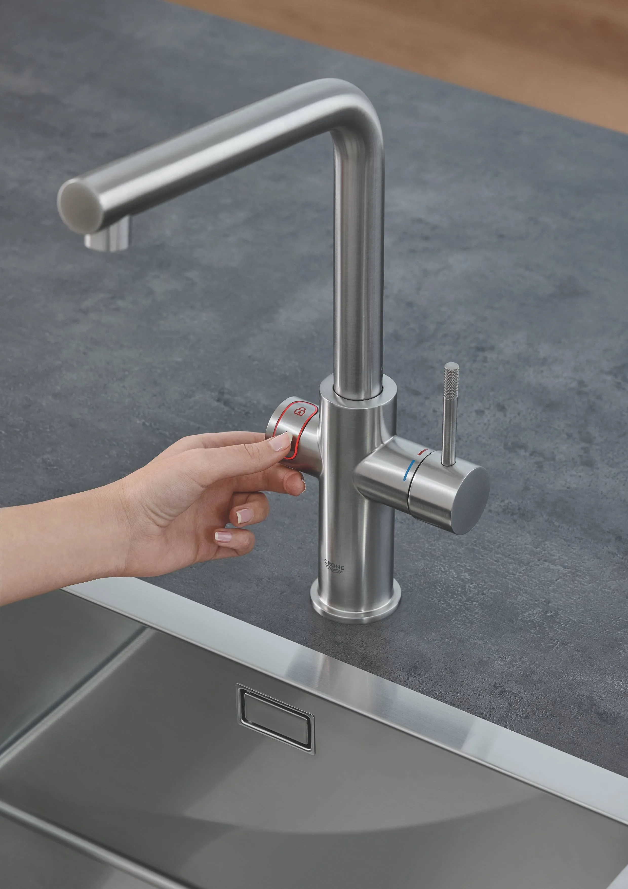 Смеситель для кухни GROHE Red Duo, бойлер L-size, суперсталь, 30325DC1