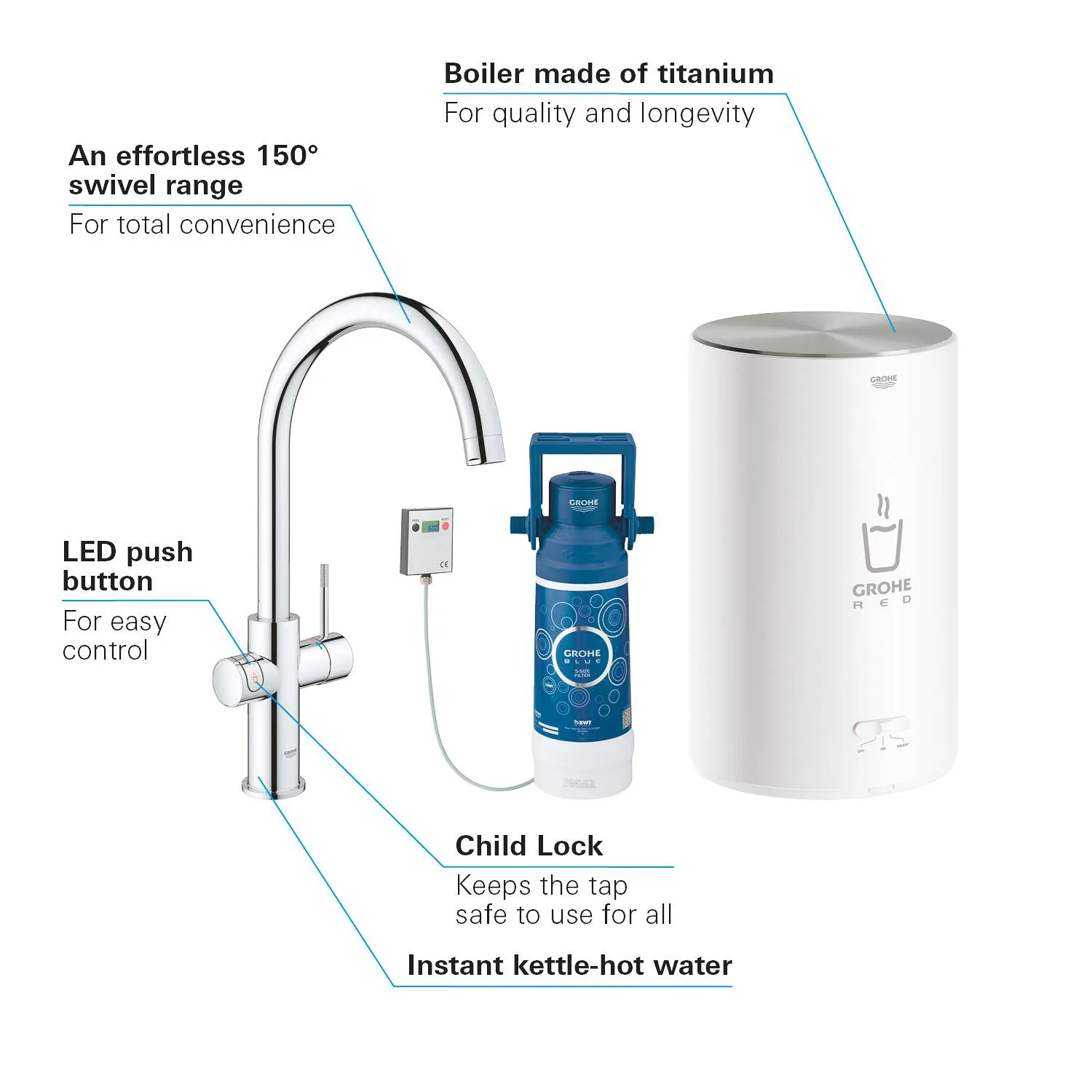 Смеситель для кухни, GROHE Red Duo, бойлер M-size, хром, 30083001