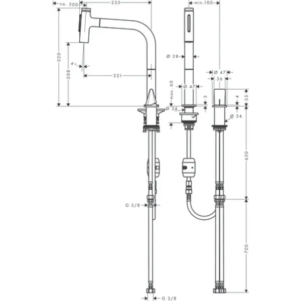 Hansgrohe 73 819 000 Metris Select M71 Смеситель для кухни 208 мм, на 2 отв., 2 реж., выдвижной излив, M