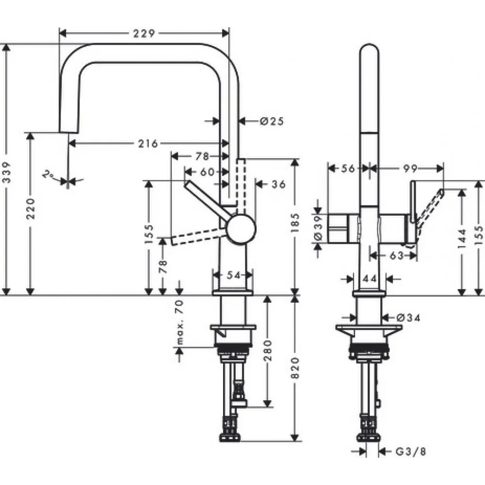 Смеситель для кухни hansgrohe Talis M54, U 220, 1jet 72807670 с запорным вентилем матовый черный