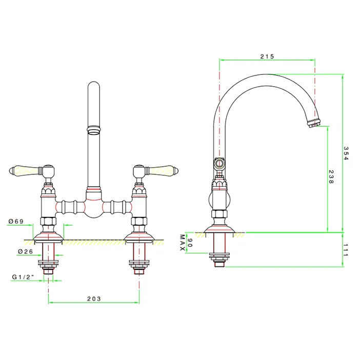 Смеситель для кухни Nicolazzi El Capitan на 2 отверстия, gold 1460GO69