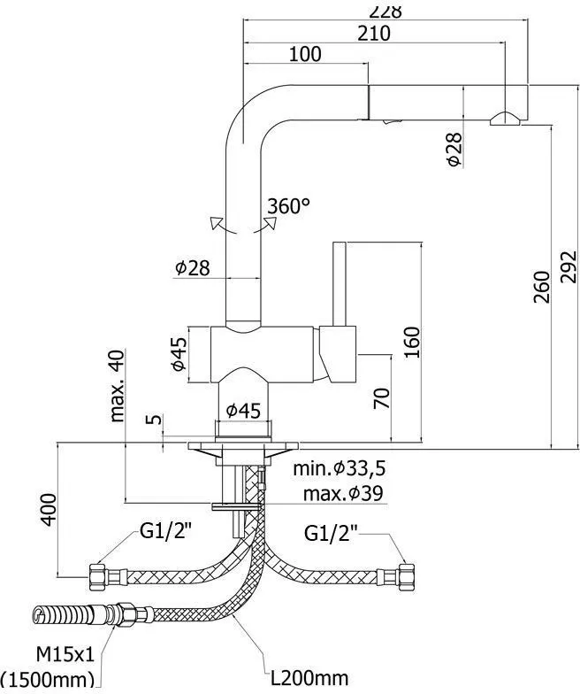 Смеситель для кухни Paffoni Light LIG285CR-MET