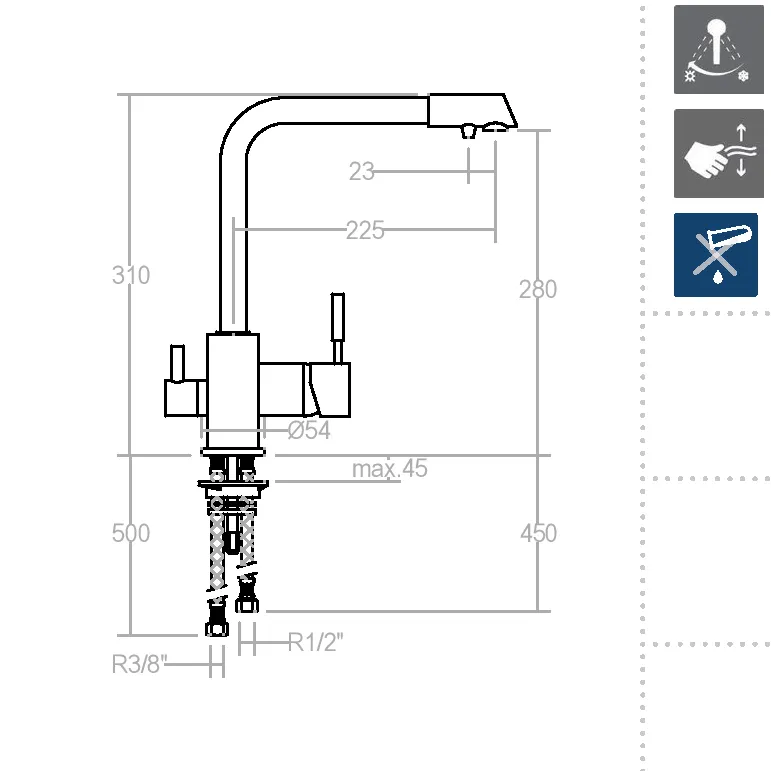 Высота смесителя составляет 310 мм, что делает его подходящим для большинства кухонных моек. Особенно стоит отметить наличие керамического картриджа, разработанного для плавной регулировки температуры воды. Это гарантирует вам легкость управления и надежность на долгие годы.
