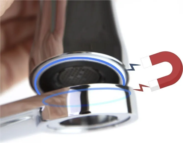 - Магнитный держатель — гарантирует надежное крепление аэратора. После использования излив автоматически вернется в исходное положение, что обеспечивает порядок на кухне.