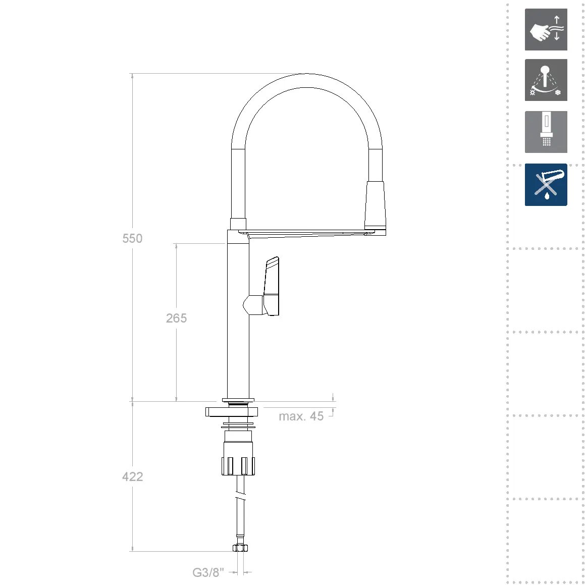 Эта модель не только функциональна, но и красива. Высота смесителя в 550 мм позволит ему гармонично вписаться в любой интерьер, придавая кухне современный и стильный вид.