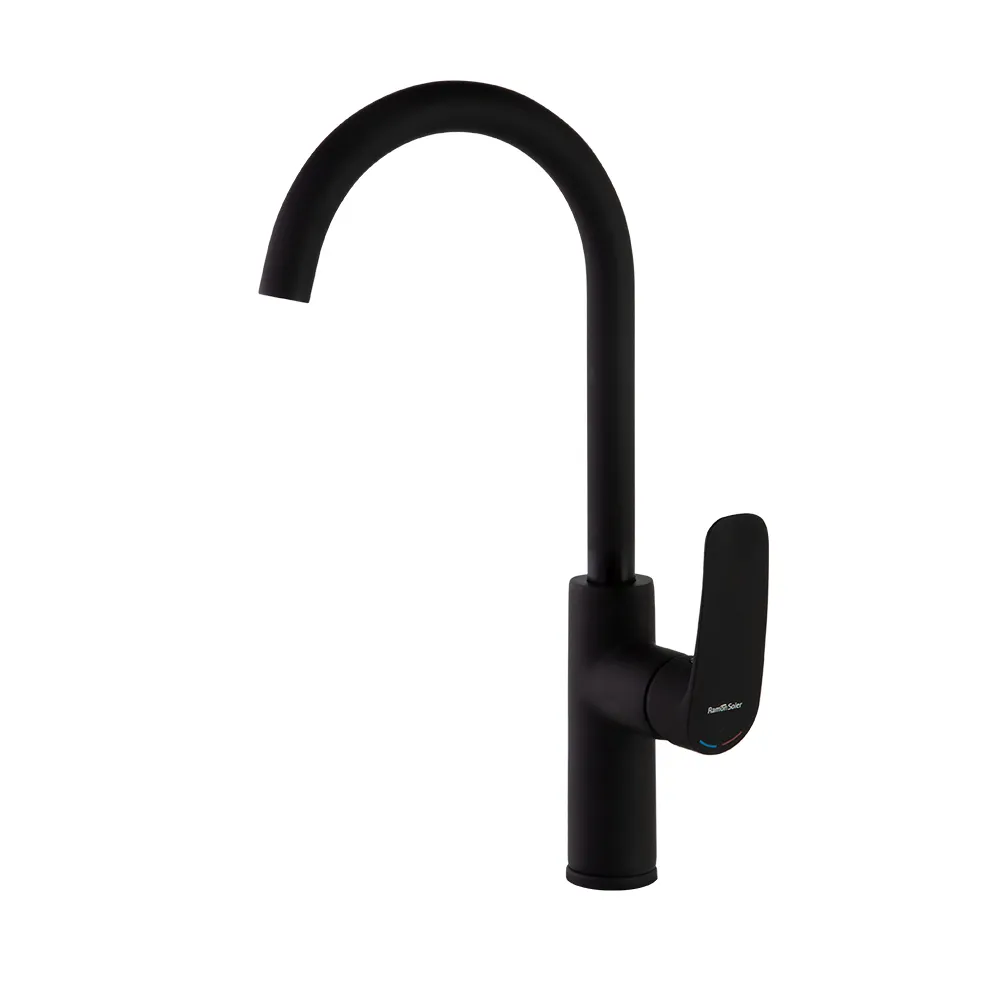 Представляем вам изысканный смеситель для кухни Ramonsoler New Fly чёрный 570611NM — воплощение идеального сочетания эстетики и функциональности от известного бренда Ramonsoler. Эта модель из коллекции New Fly не просто удивляет своим минималистичным дизайном, но и гарантирует комфорт в использовании благодаря уникальной форме ручки. Ручка смесителя имеет углубление на конце, что позволяет удобно и естественно открывать и закрывать кран, напоминая собой эргономичный контур большого пальца.