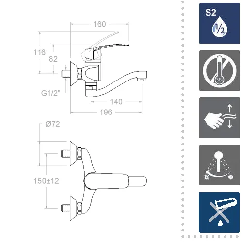 Благодаря идеальному уровню звука при давлении в 3 бара – менее 20 дБ – вы можете наслаждаться тишиной даже при интенсивном использовании. Смеситель устойчив к статическому давлению до 10 бар и гидравлическим ударам до 25 бар, обеспечивая надежность и долговечность. Для его оптимальной работы рекомендуются параметры давления от 1 до 5 бар и температура горячей воды около 55 °С.
