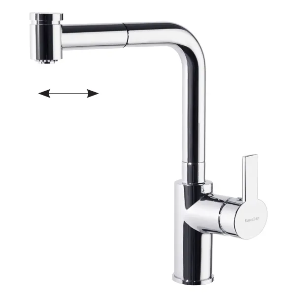 Однорычажный смеситель с выдвижной лейкой предлагает невероятный уровень комфорта и универсальности. Вы с легкостью сможете направить поток воды туда, куда нужно, для мытья овощей, фруктов или наполнения больших емкостей. Поворотный излив обеспечивает удобное использование даже при наличии двойной мойки.