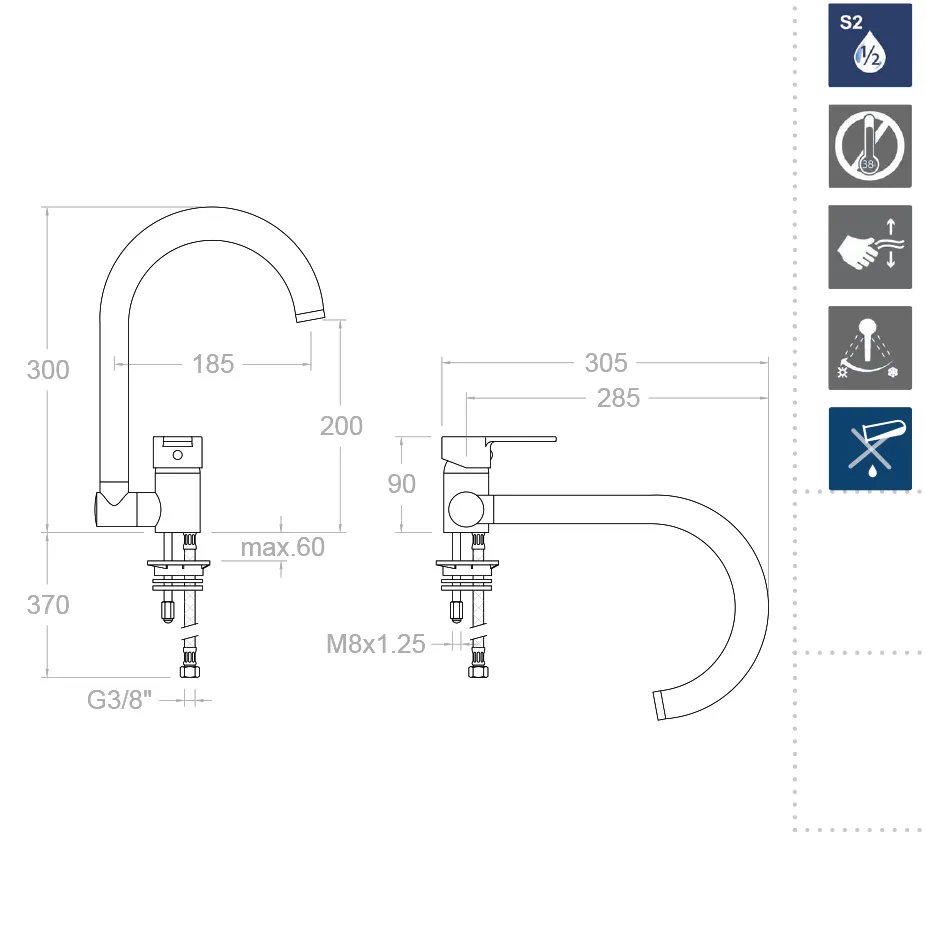Отличительная особенность этой модели — С2 система двуступенчатого открытия воды. Она позволяет снизить расход воды до 50% без ущерба для комфорта. При открытии кран предлагает два режима: экономичный и полный, при плавном переходе между ними. Уникальная система аэрации сохраняет плотность потока воды, обеспечивая комфорт при меньшем напоре.