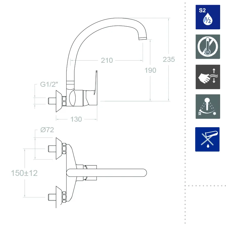 - Система экономии воды S2 позволяет открыть ручку смесителя в два этапа, существенно снижая потребление воды.