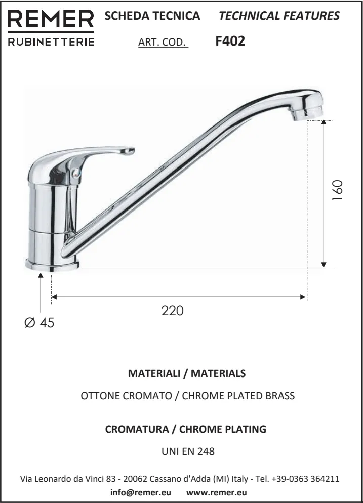 Смеситель для кухни Remer 35 в цвете хром — это идеальное решение для тех, кто ценит стиль и функциональность. Этот однорычажный смеситель оснащен поворотным изливом и керамическим дисковым картриджем диаметром 35 мм, что обеспечивает долговечность и надежность в использовании. Коллекция предлагает разнообразие стилей и форм, позволяя легко вписать изделие в любой кухонный интерьер. Доступен в четырех вариантах ручек, что позволяет выбрать наиболее подходящий стиль для вашей кухни. Хромированное покрытие не только придаёт смесителю современный вид, но и защищает его от коррозии. Этот смеситель с легкостью станет стильным акцентом на вашей кухне.