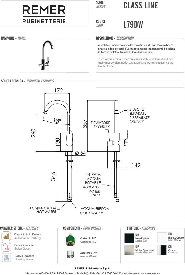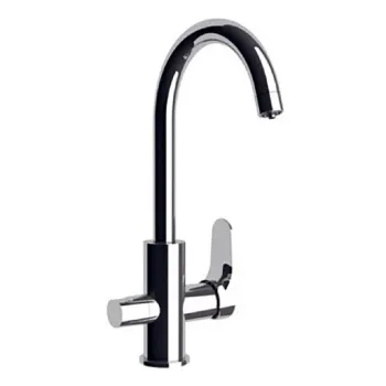 Этот стильный и функциональный смеситель от бренда Remer из коллекции Class Line прекрасно впишется в любую современную кухню. Смеситель оснащен одним рычагом, что обеспечивает удобство управления, а также двумя независимыми выходами, позволяющими выбрать между обычной и очищенной питьевой водой. С его помощью вы можете подавать три типа воды: горячую, холодную и очищенную от фильтра. Поворотный излив обеспечивает дополнительное удобство в использовании, а возможность соединения с фильтром делает этот смеситель отличным выбором для тех, кто заботится о качестве питьевой воды. Благодаря хромированной глянцевой поверхности и округлой форме, этот смеситель станет стильным дополнением вашей кухни. Установка осуществляется на мойку, что подходит для большинства кухонных интерьеров.