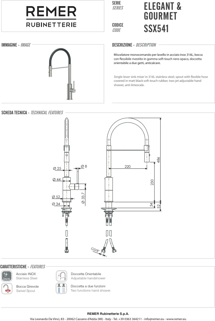 Ищете надежный и стильный смеситель для вашей кухни? Смеситель Remer X-style из коллекции X-style - это идеальное сочетание качества и дизайна. Изготовленный из нержавеющей стали 316L, этот смеситель отличается повышенной износостойкостью и долговечностью. Удобный спусковой механизм с рычажным управлением и поворотный излив позволяют легко управлять потоком воды.
